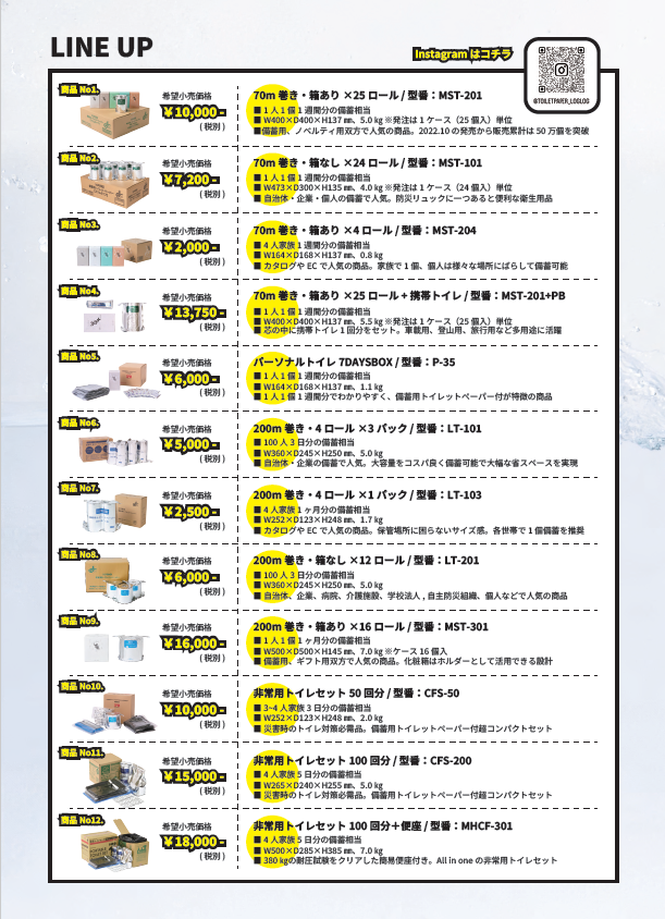 企業はもちろん、自治会や学校の備蓄品としていかかでしょうか
